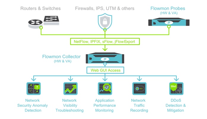 Gdy specjaliści ds. sieci muszą zarządzać coraz bardziej skomplikowanymi środowiskami, zapewnianie niezawodności, dostępności i bezpieczeństwa usług biznesowych staje się bardzo trudne. Flowmon to kompleksowa platforma obejmująca wszystko to, co jest potrzebne do uzyskiwania szczegółowego wglądu w zachowanie sieci. Umożliwia monitorowanie, diagnozowanie i analizowanie sieci w celu optymalizowania wydajności infrastruktury. Rozwiązanie korzysta z technologii monitorowania przepływów w sieci IP (NetFlow, IPFIX), a pozyskiwane w ten sposób dane wykorzystuje do zwiększenia wydajności sieci i aplikacji oraz ochrony przed zaawansowanymi zagrożeniami cybernetycznymi, które omijają tradycyjne zabezpieczenia. Platforma została wyróżnione przez firmę Gartner, jest rekomendowana m.in. przez CiscoCheck Point i IBM.